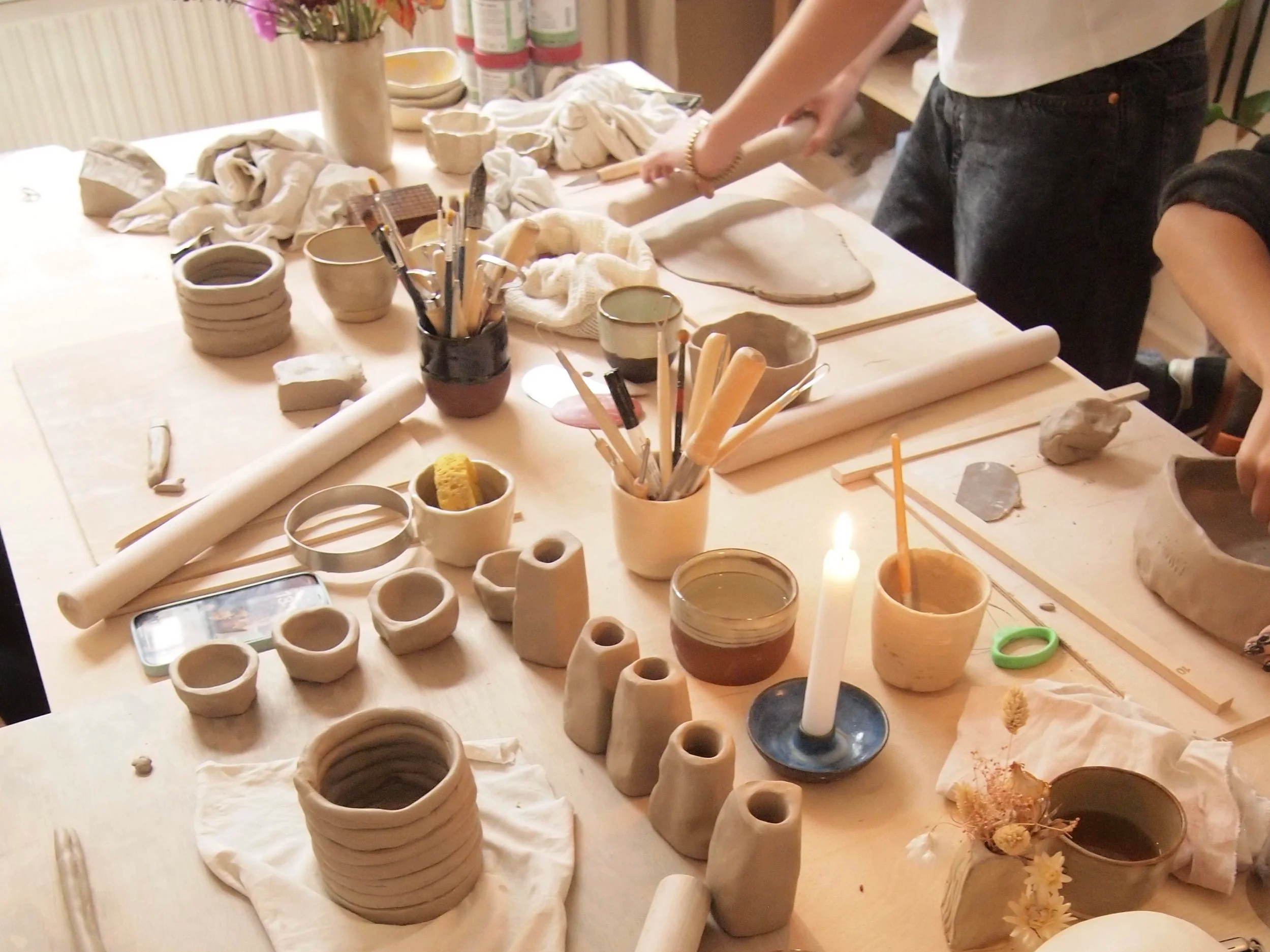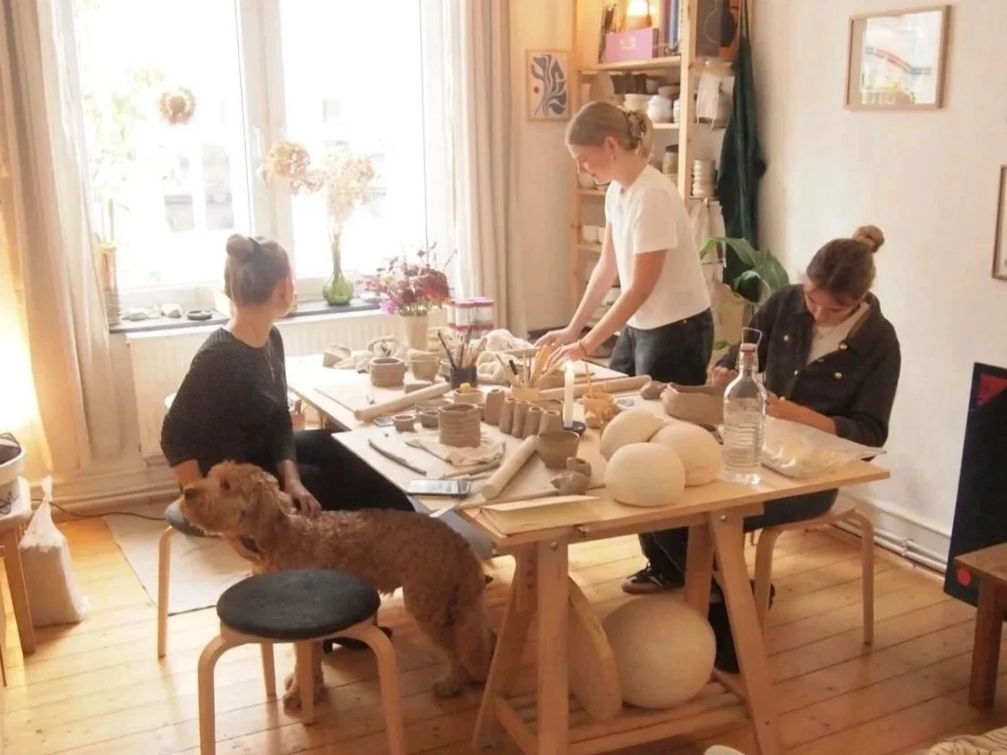 in meinem kleinen wohnungs-atelier können max. 6 Personen an einem großen tisch platz nehmen und wir töpfern zusammen mithilfe von handaufbautechniken stücke auf die ihr lust habt. nach einer kleinen einführung und einem probestück, dürft ihr euch ganz frei austoben. hilfestellung sowie einige utensilien, die das töpfern erleichtern wird’s dabei von mir geben. ab einer zahl von 4 personen kann der Kurs stattfinden. 4 stücke pro person werden von mir im anschluss getrocknet, ein wenig geglättet, glasiert und anschließend gebrannt.