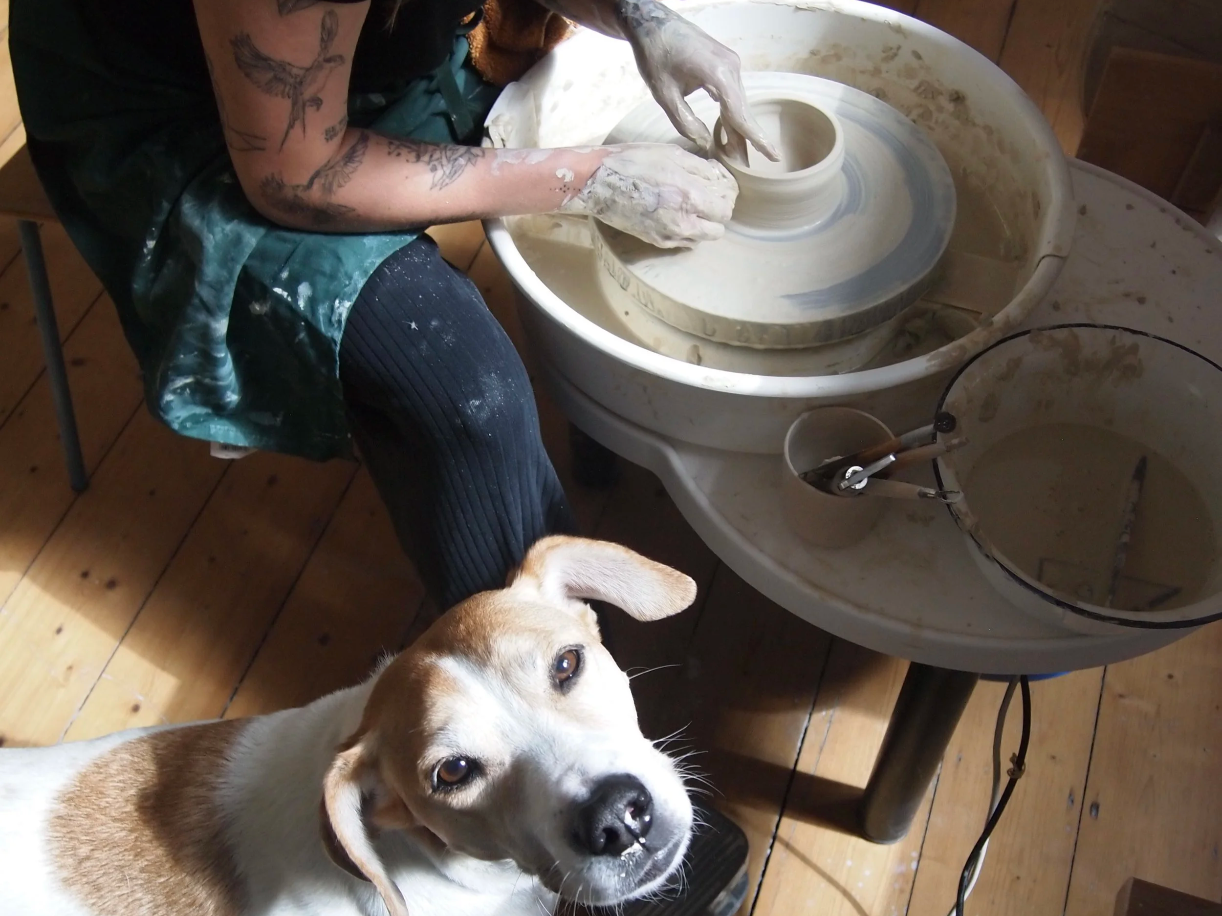 ein kleiner hinweis: das drehen an der töpferscheibe benötigt einiges an übung, um es perfekt hinzukriegen. sei bitte nicht frustriert, wenn das auf anhieb nicht klappt. :)
